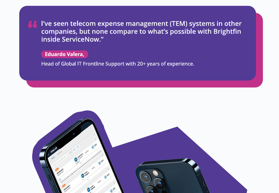 As the only TEM solution built directly in ServiceNow, Brightfin empowers enterprises with: